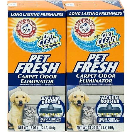 A detailed review of the Arm Hammer Pet Fresh Carpet Deodorizer Plus Oxi Clean along with our in Carpet Deodorizers Buying Guide. I recently bought Arm and Hammers Pet Fresh Odor Eliminator to freshen up my carpets as I have a new puppy. 4 Arm Hammer Pet Stain and Odor Eliminator 32 Ounce Pack of 2 View Product 5 Arm and Hammer Cat Litter Deodorizer Spray 215 Fl Oz 2-Pack View Product 6 Arm Hammer Double Duty Cat Litter Deodorizer with Baking Soda 30 oz 2 Pack View Product 7 4 Pk Arm Hammer Pet Fresh Carpet Odor Eliminator Plus Oxi Clean Dirt Fighters.